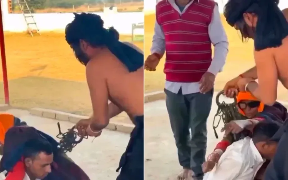 طقوس الأرواح الشريرة في الهند.. شاب يتعرض للضرب بسلسلة حديدية | فيديو صادم