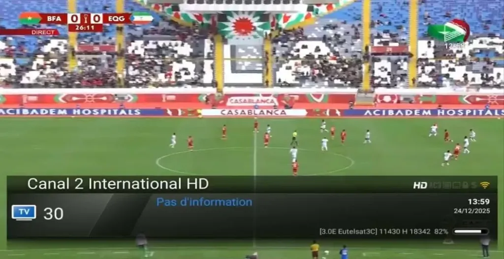 يمكن لعشاق الكرة الإفريقية متابعة هذه المواجهة الحاسمة ضبط تردد قناة CANAL 2 INTERNATIONAL عبر القمر الصناعي Eutelsat 3.1E على التردد 11431 H 18330، وذلك على قناة Canal 2 International HD، حيث تُبث المباراة بجودة عالية وواضحة لجميع المشاهدين، مع توفر البث المفتوح الذي لا يحتاج إلى أي اشتراك إضافي، ما يتيح لملايين المشاهدين فرصة متابعة الحدث مباشرة من مختلف الدول العربية والأفريقية، والتردد هو: