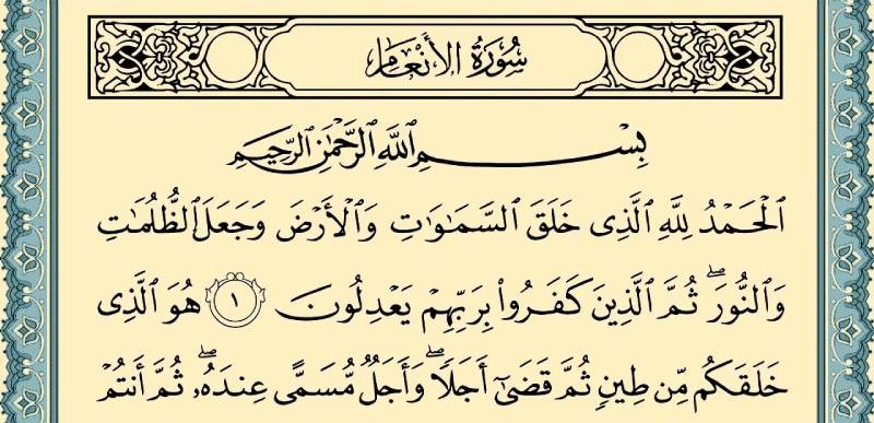 - قد تعني سورة الأنعام في منام المتزوجة الأمن بعد الخوف.