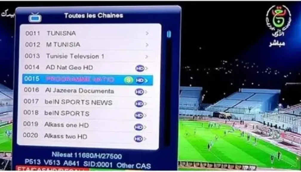 طريقة فك تشفير القناة الجزائرية الأولى الرياضية
