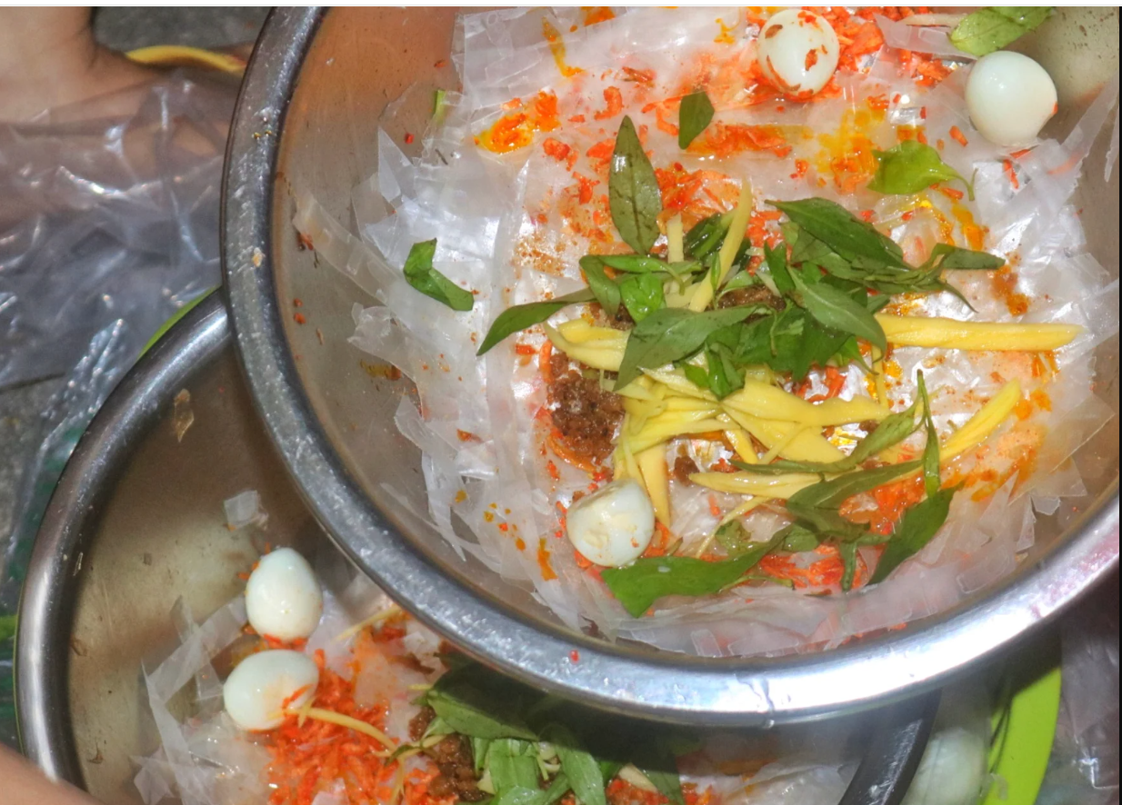 يتم إحضار مجموعة من ورق الأرز، وعملها في هيئة "كومة" ويتم وضعها في الماء حتى تصبح مرنة ولزجة، ثم توضع في صلصات متنوعة.