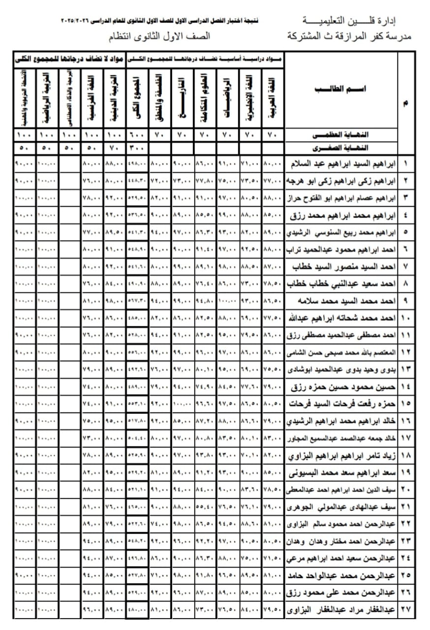 أظهرت الكشوف المعلنة تفاصيل درجات الطلاب في جميع المواد الدراسية سواء الأساسية أو غير الأساسية إلى جانب توضيح المجموع الكلي، بما يمنح الطلاب وأولياء الأمور صورة كاملة عن مستوى الأداء خلال الفصل الدراسي الأول.