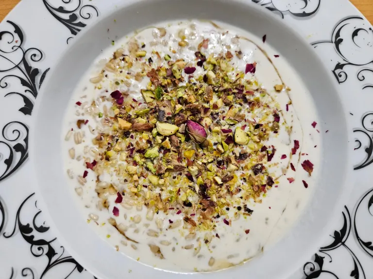 - يمكن التزيين بالفستق والمكسرات أو الفواكه المجففة.