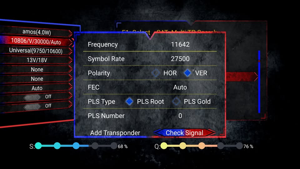 أما عن الترددات الجديدة المتاحة على القمر الصناعي آموس، فتتمثل بذلك لتكون على النحو التالي: