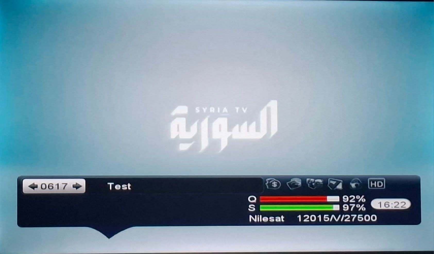 | نايل سات | 12015 | عمودي | 27500 | Test |