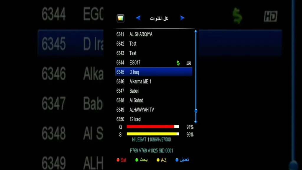 - القمر الصناعي: نايل سات.