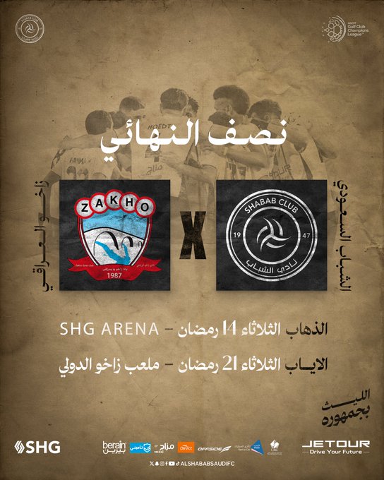 - يلتقي نادي الشباب السعودي مع زاخو يوم 3 مارس المقبل.