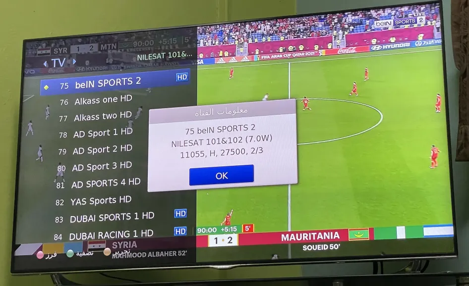 طريقة ضبط قناة بي إن سبورتس 2 على الرسيفر